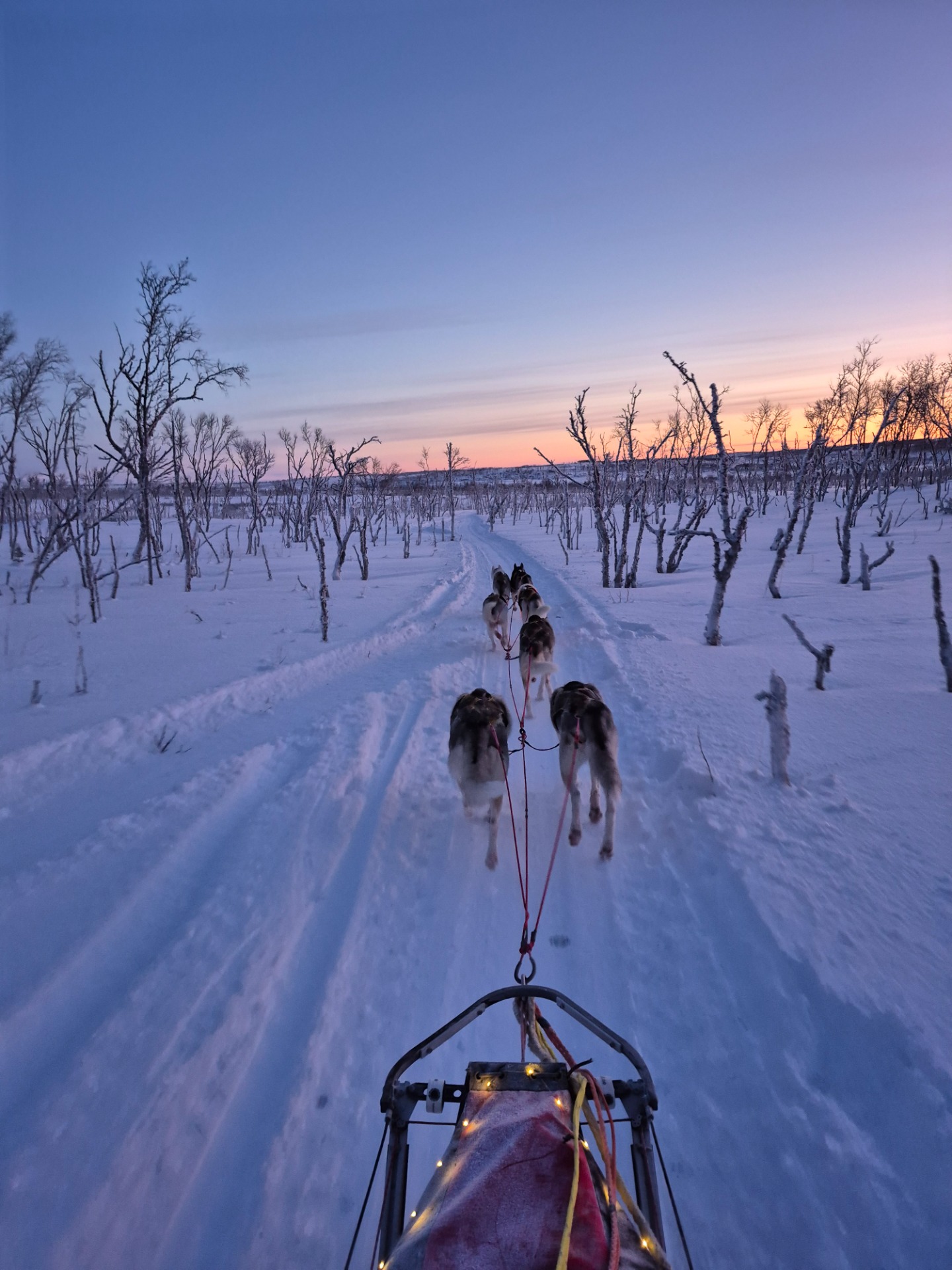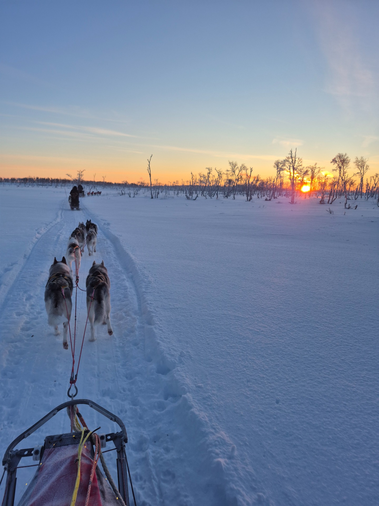 Vi var så heldige å bli invitert på middag i Kautokeino av de nye eierne til Smilla (Sakura) og vi fikk treffe henne igjen. En god middag senere var vi igjen på vei hjem. Vel fremme fikk alle hundene løpe i løpegården og alle var i kjempefin form. Foring ble unnagjort også kunne vi komme oss inn og i seng.